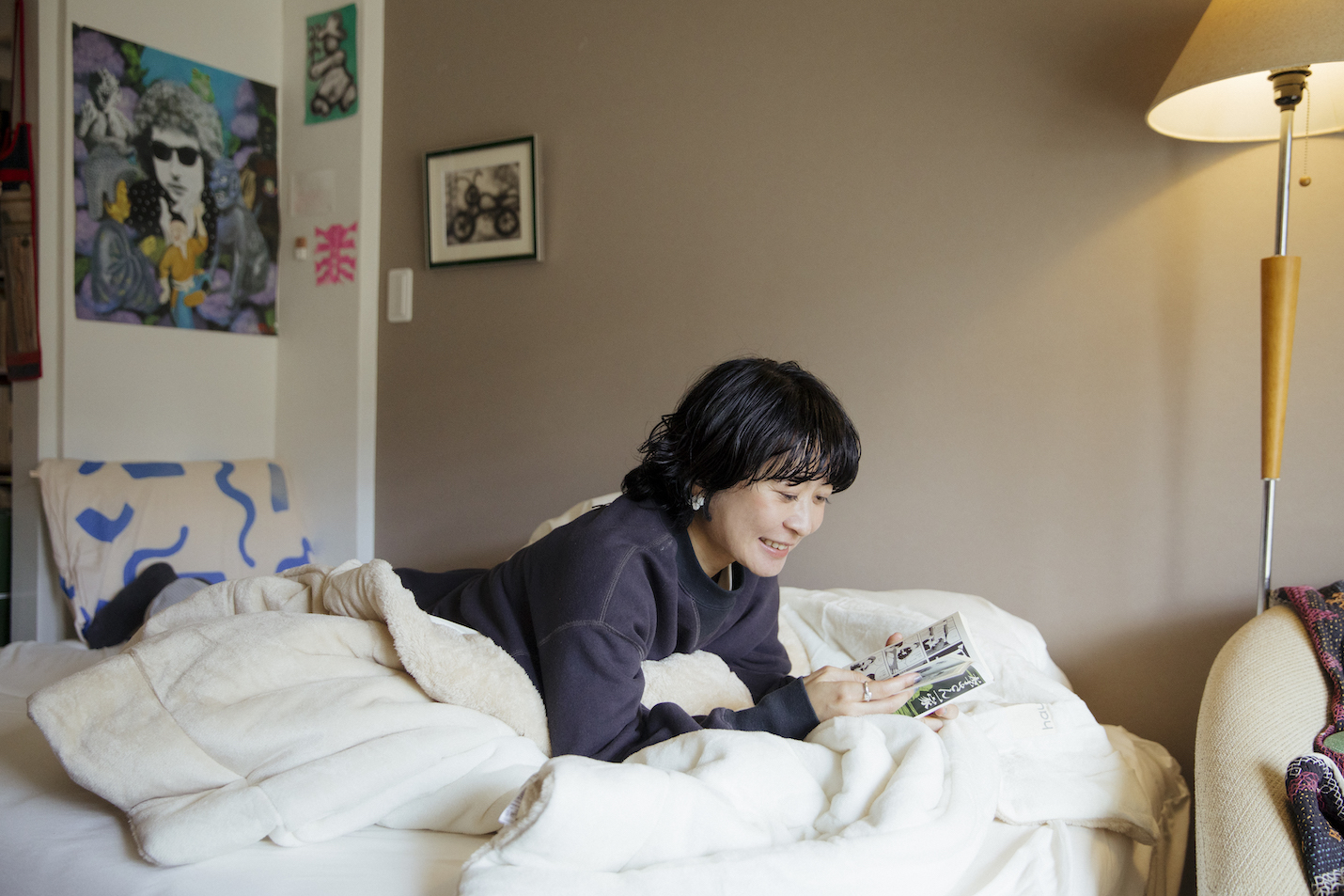 ベッドって、不思議な場所ですよね(笑)。本を読む場所、仕事をする場所、ごはんを食べる場所——本来は分けたほうが機能的なはずなのに、なぜか全部ベッドで完結してしまう。あまり大きな声では言えないけれど(笑)。