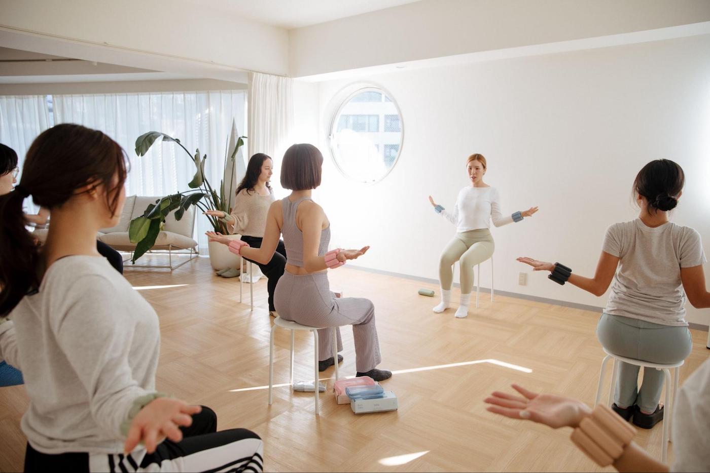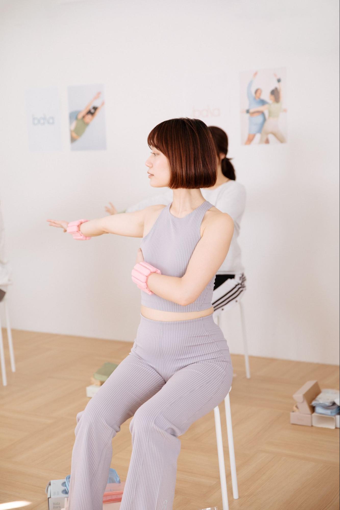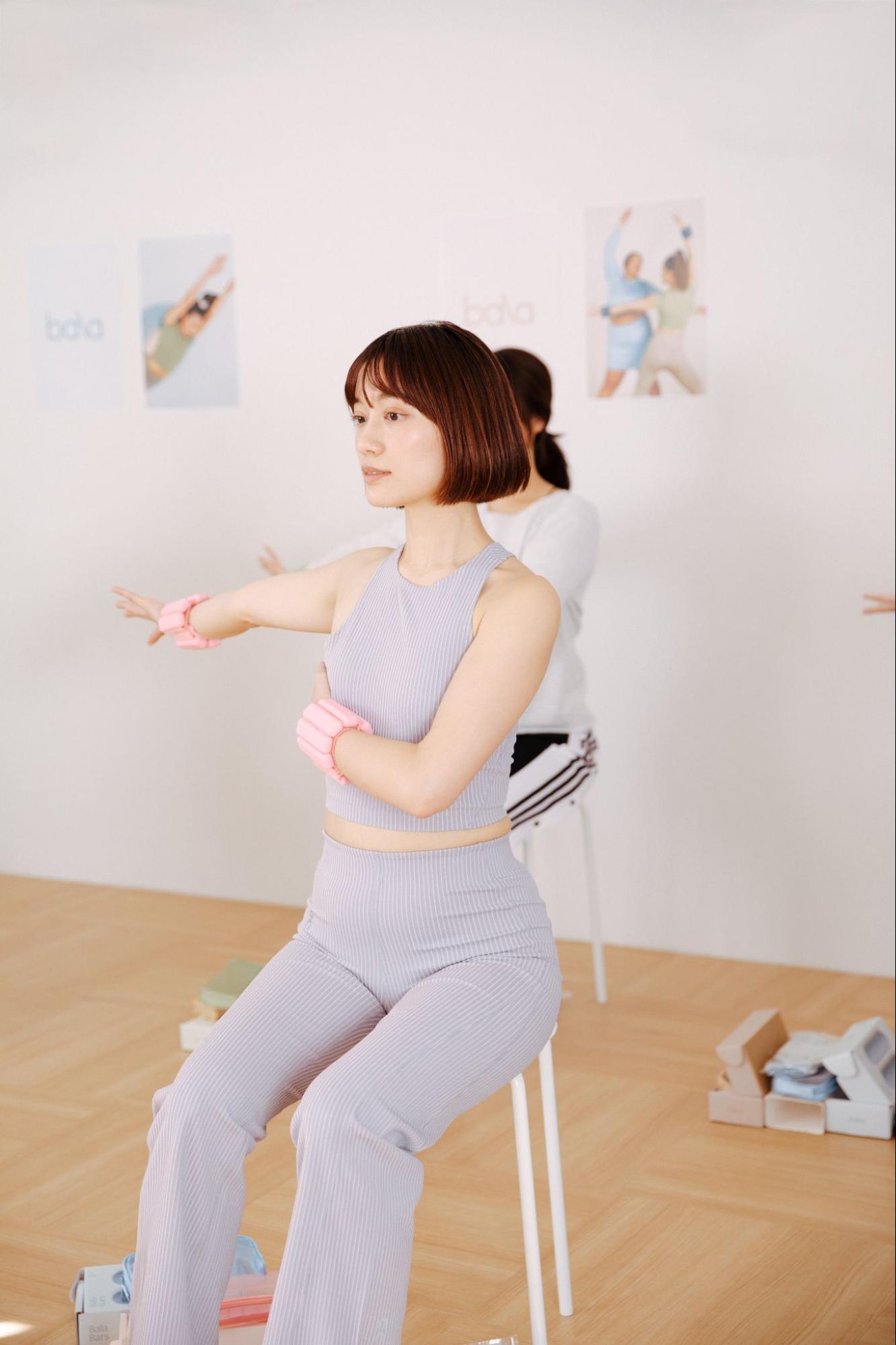 LA発のフィットネスブランドBala主催によるウェルネスワークショップ「Let’s バラサイズ!」を開催しました。本イベントは、姿勢改善を切り口に、心と身体の両方をやさしく整えることを目的としたプログラム。Bala公式トレーナーのおざれなさんを迎え、椅子に座ったままできるエクササイズを中心に、巻き肩や猫背をリセットしながら、デコルテや肩・二の腕まわりを心地よくほぐしていきました。